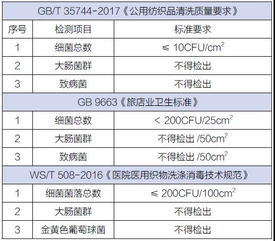▲醫(yī)用織物和酒店織物洗滌后的衛(wèi)生標準