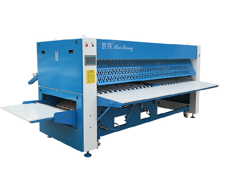 嗨,大家好,我是小張,今天給大家介紹百強極具口碑的ZD系列布草折疊機,它主用于普通布草燙平線的布草折疊,速度至高可達50m/min,高度智能化的液晶觸摸屏操作系統,操作簡單,一學就會。設備配有智能紅外線檢查系統,能有效測量織物的長度和實際運動速度,高效識別布草寬窄,折疊精確度更高,且不易損傷布草,橫、縱折疊氣動控制,可實現兩橫三縱折疊;橫向折疊配置四通道折疊工作模式,布草不必同步輸入, 也不必同樣大小、均可折疊;